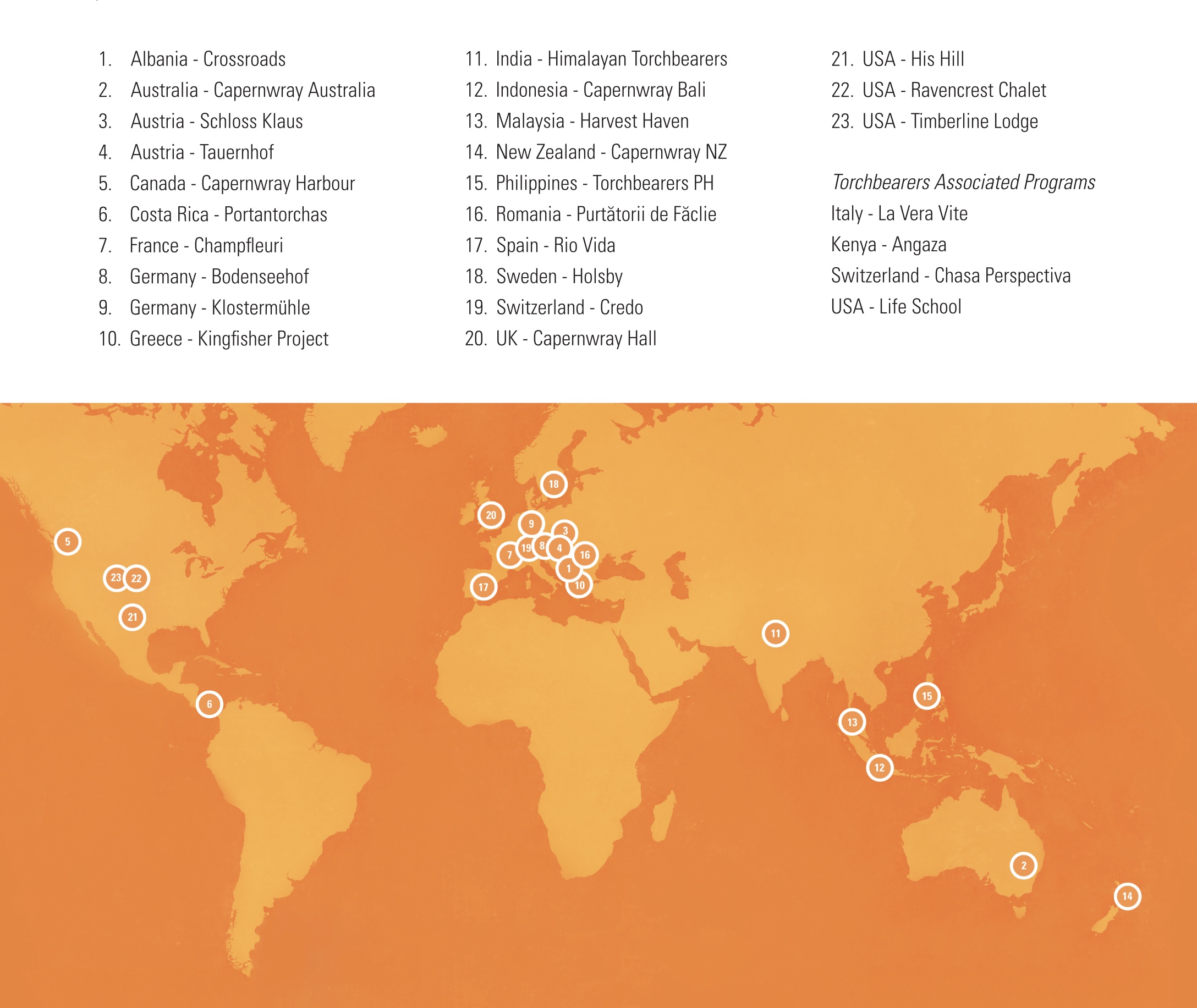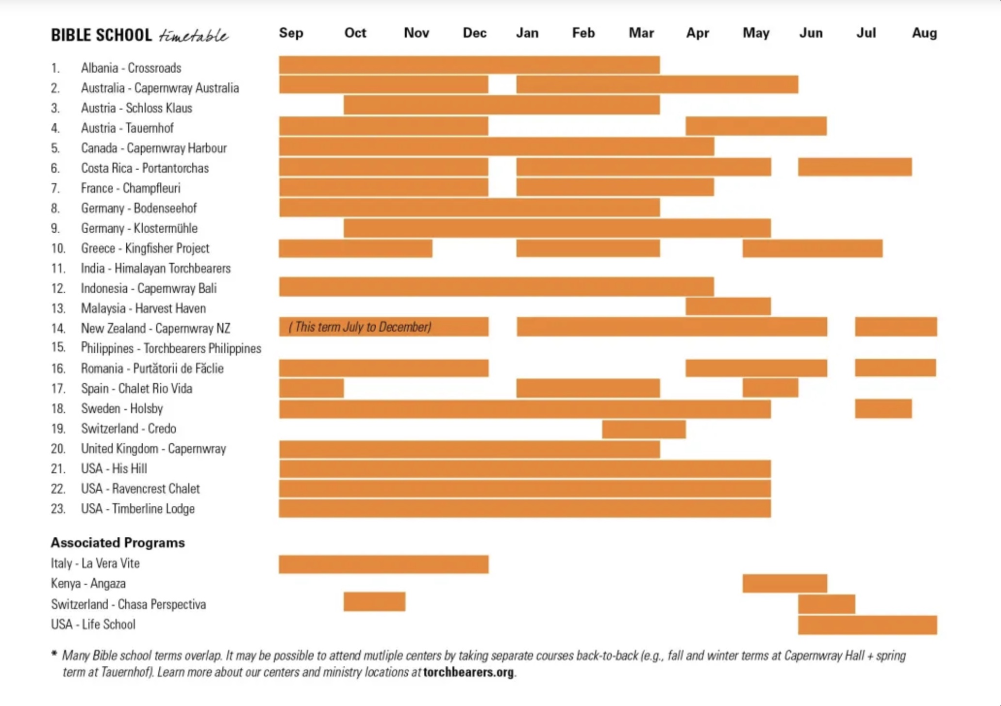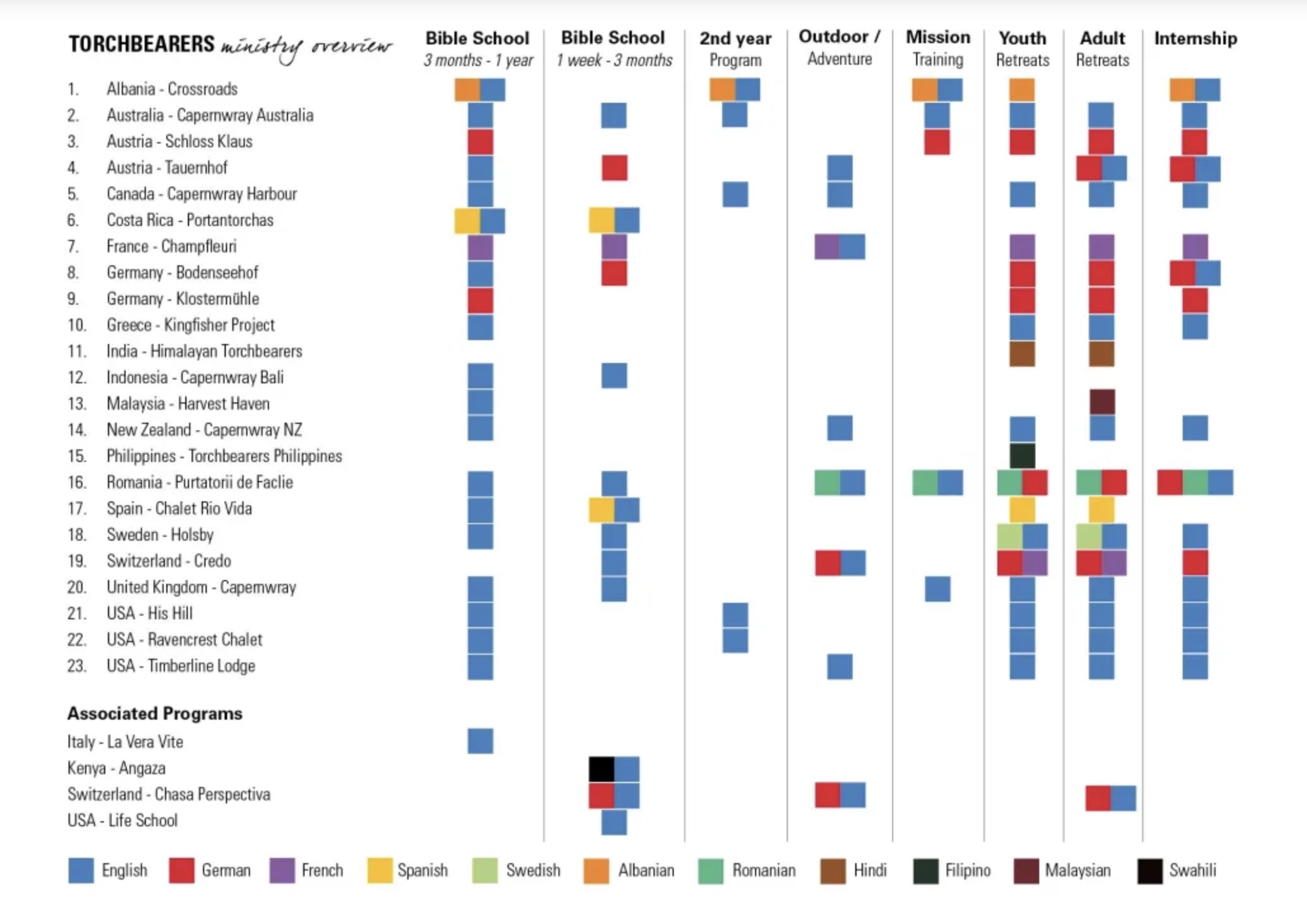Aktuelle Standorte weltweit Bibelschulen und andere ProgrammeWas wird wo und wann angeboten Mehr Info zu den Standorten und deren Angebote weltweit (CHASA PERSPECTIVA ist auf der internationalen Webseite unter dem Menü Link „Zugehörige Programme“ zu finden.)
